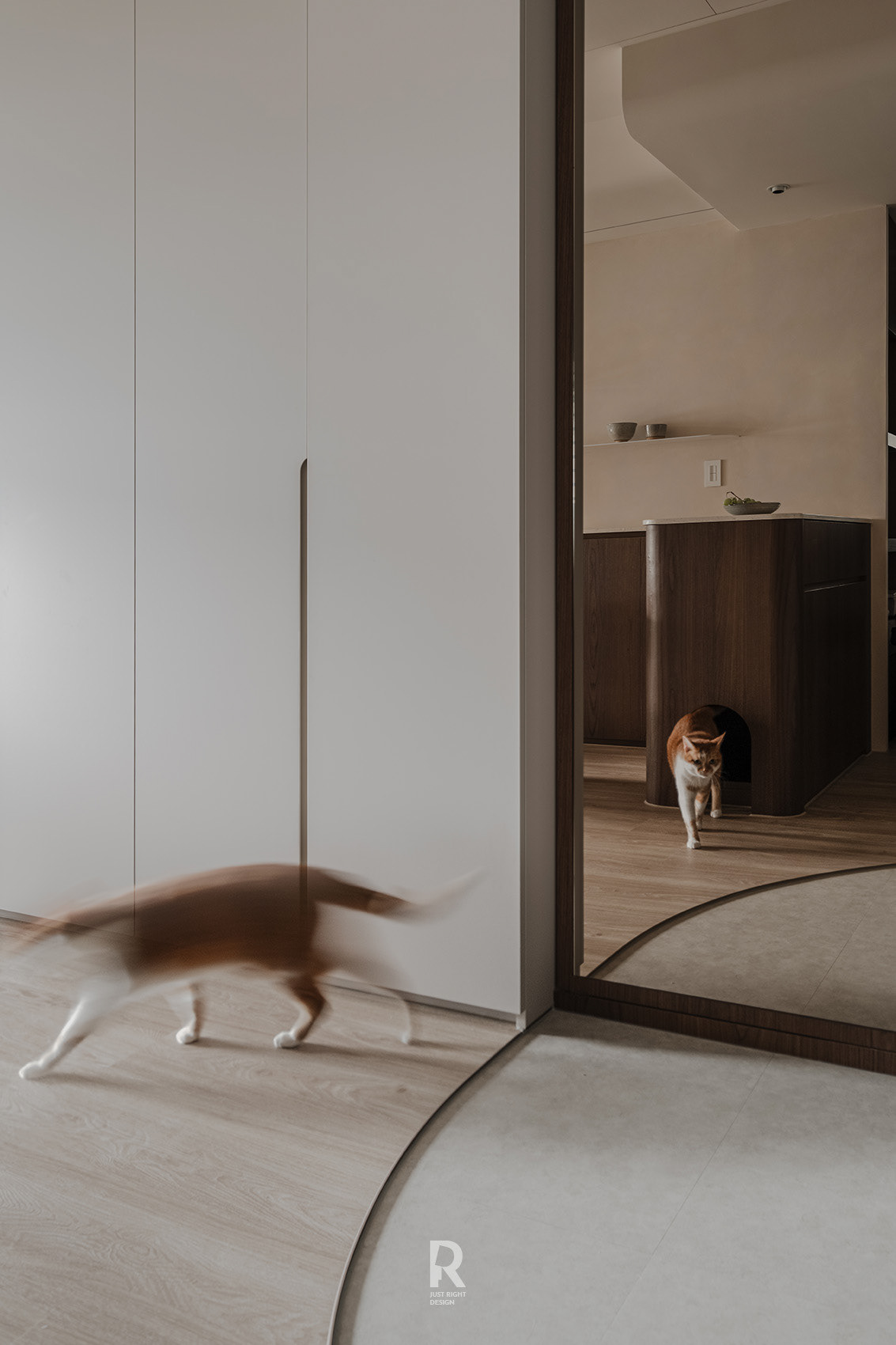 Located in Beitun, Taichung, this two-bedroom residence is composed of soft neutrals and walnut tones, where light becomes the language of space. Restrained lines and calm reflections create a quiet rhythm that breathes with subtle presence. It is a dialogue of stillness and balance—where simplicity reveals the warmth and depth of everyday life.